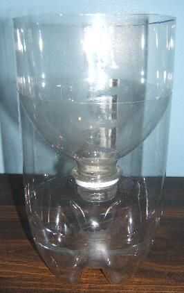 Cuando la Copa está invertida (con el cuello hacia abajo) y coloca dentro de la botella, no debe tocar la parte inferior. Debe ser aproximadamente 2 pulgadas de espacio libre para que la mecha se puede colgar en el agua pero la tapa no puede tocarlo.
