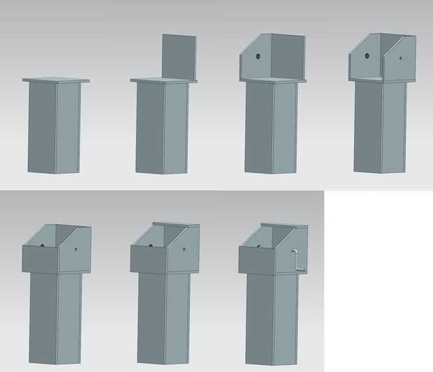 6. la pieza frontal (frente del archivo del pdf) se fija a la pieza inferior, izquierda y derecha