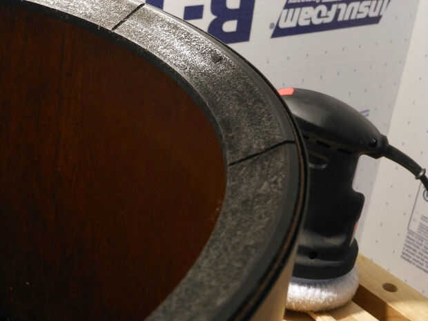 Los bordes del mdf negro tenían una textura muy desagradable. Era áspero y tipo de... peludo. Ya lijado suave eliminaría la capa negra, me frota un trozo de cera de abejas (supongo una vela iba a hacer el truco así) y pulir con la pulidora. Pero lo que realmente hizo la diferencia fue mano-roce con mi dedo envuelto en un trapo.