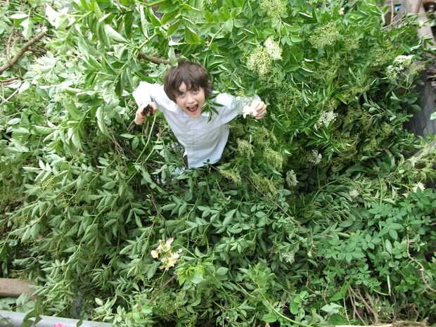 Nuestro árbol anciano en el trabajo sin embargo tuvo que bajar. Estaba empezando a empujar una cerca y queríamos aumentar la pared así. Entonces yo cortar y luego encontró un muchacho pequeño de forraje a través de él desgranó las cabezas mientras que remató el árbol.