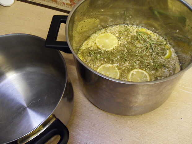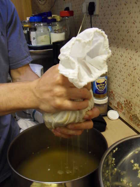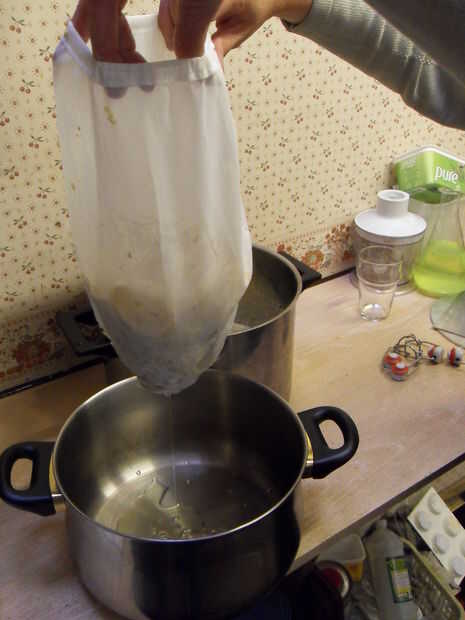 Haber empapado durante 48 horas el cordial ahora debería estar listo. Sacar los frascos del horno y deje que se enfríe lo suficiente para manejarlos. Llenar las botellas de cualquier manera por favor, cristalería de laboratorio no es esencial.