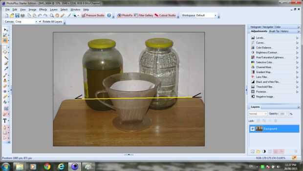 Luego buscar un borde recto en la imagen mueva el cursor hasta que el borde estrecho y mantenga pulsado el botón izquierdo del ratón. Me mueve el cursor a otro punto en el estrecho borde en la imagen y suelte el botón del ratón. Serif PhotoPlus straitens la imagen y cultivos para un rectángulo bonito.