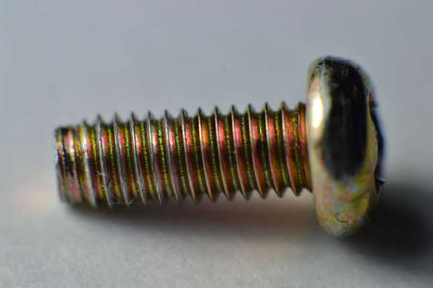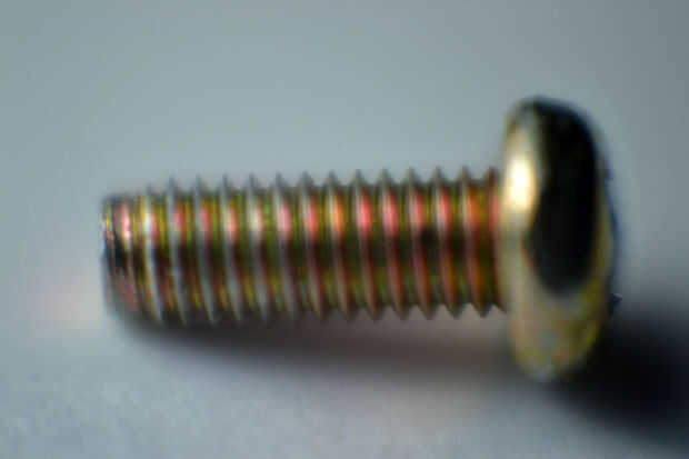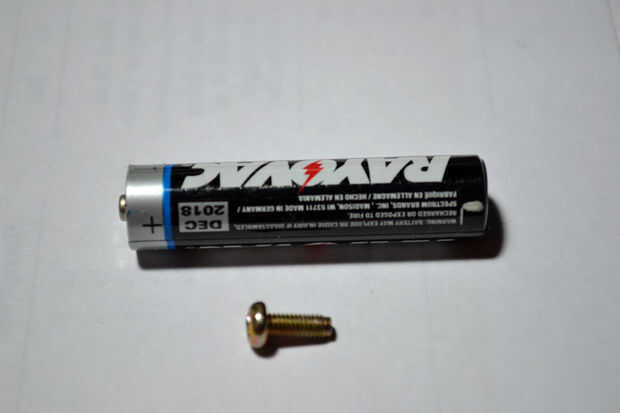 Con toda la piratería hecho, yo desmontar otra vez el lente así podría limpiar. Me puse guantes de látex, hizo una mezcla de ventana (con amoniaco) y el Hidrógeno peróxido y agarrar un par de paños de microfibra. Limpiar las lentes como estaba montar a la lente, tratando de mantener todo libre de polvo como sea posible. Y eso es todo. Aquí están algunas de las fotos que saqué con este lente solo (el primero es una referencia del tornillo al lado de una pila tipo AAA). La primera foto macro del tornillo es a f 4.5 por eso es todo blury (normal para una lente hackeada), y el segundo es a f 22. Gracias: D!!!