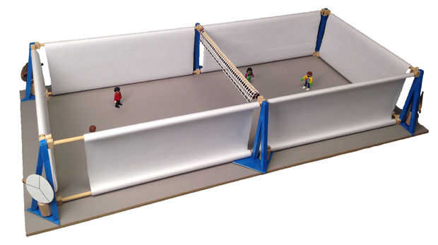 Somos tres jóvenes estudiantes de HoWest, una Universidad en Bélgica. Tenemos la asignación para crear una máquina de sueños para los alumnos de quinto grado. Visitamos la escuela primaria y allí los niños han dibujado su propia máquina de sueños. De todos estos dibujos escogimos uno que hemos tratado de realizar lo mejor posible. El dibujo refleja la máquina del sueño del niño de 10 año de edad. Ha dibujado una máquina de teletransporte y una máquina de deporte también.
