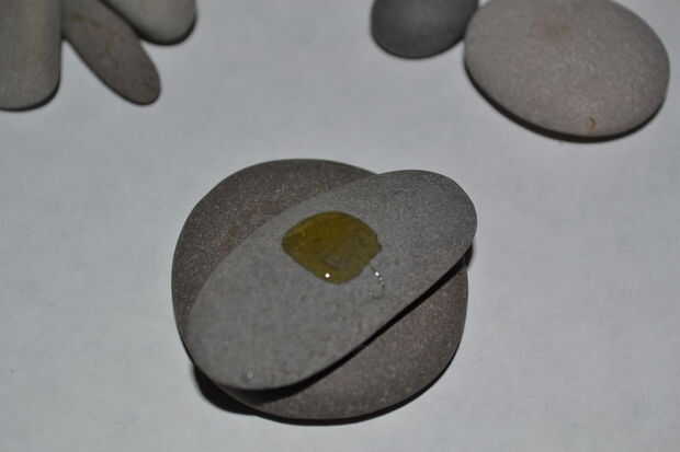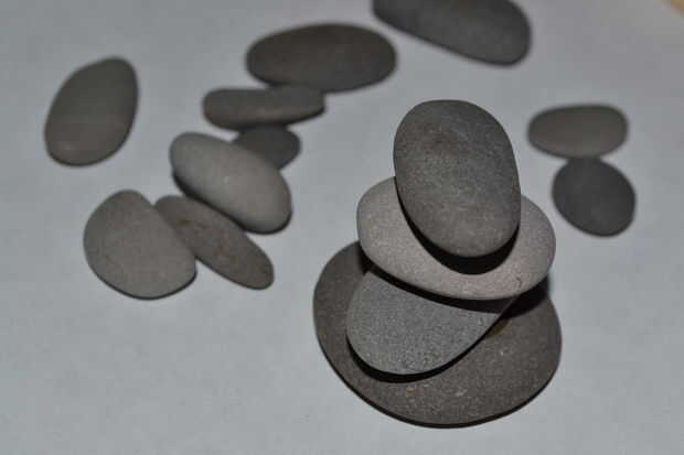 Unir las piedras, de las más grandes a los más pequeños, permitiendo que se seque el pegamento entre ellos. Trate de mantener todos los centros de las piedras en la misma línea vertical hipotética, por lo que parecen en equilibrio.