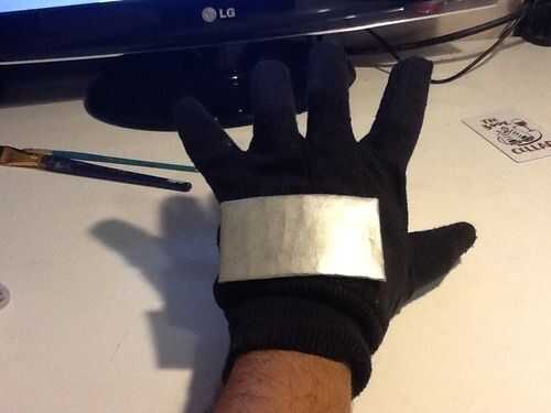 Para los guantes, corte un pedazo rectangular de cartón y cubrirlo con su placa de cartulina o poster de cómic y pegamento caliente en el guante. Usted puede hacer esto también para las botas.