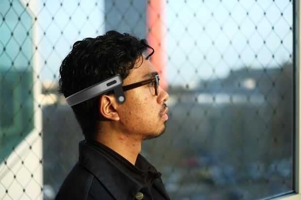 Ahora que la colocación y dimensiones del hueso realizar transductores son correctos, puede utilizar estos datos para diseñar el hueso llevando a cabo para tener los auriculares. Aquí es un render 3D de nuestro diseño.
