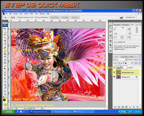 No te preocupes si no ir más allá de los bordes. Sólo tiene que pulsar tecla "X" para cambiar el primer plano al blanco y pincel el exceso para borrar la máscara. Este debe ser un desafío en sus habilidades adhesiva especialmente en la parte de afinarlo.