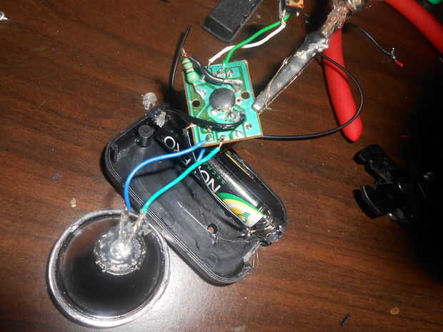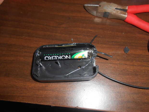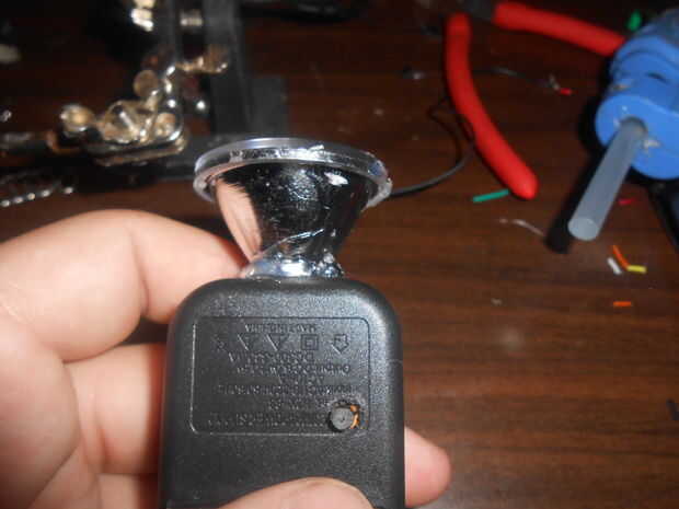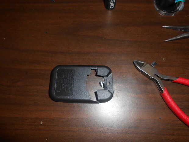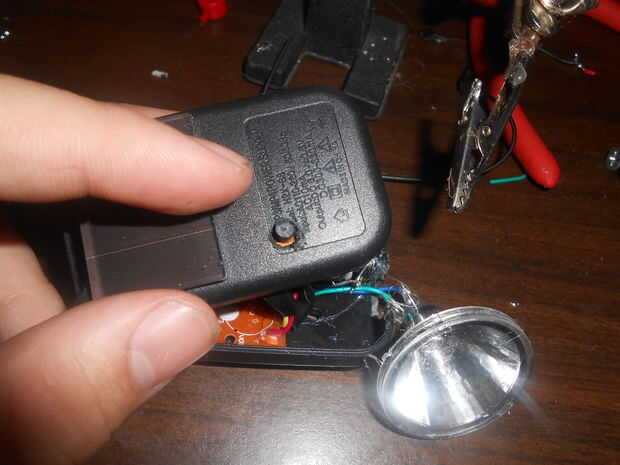 4 - perforar un pequeño agujero para el botón, si no tienes un pequeño bastante taladro poco uso solo un tornillo :)