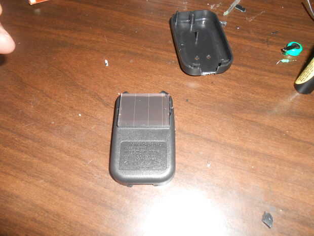 3 º - corté un cuadrado de aspecto áspero en la parte superior de la caja para el panel solar. Los cables y soldaduras caben fácilmente usando este método.