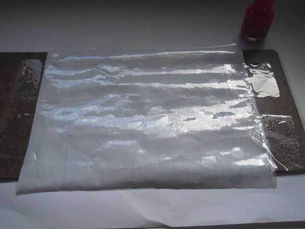 3. Vierta lentamente el esmalte de uñas sobre el material (más lenta y más suave superficie llegar)