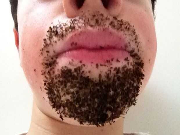 Aplicar el té a tu cara. Utilice sus uñas para chatarra a cualquier escamas del té que están en tu labio o cara que desea eliminar. Esto hará que el bigote o la barba ver más real si usted raspe copos de té extra, que no son necesarios.