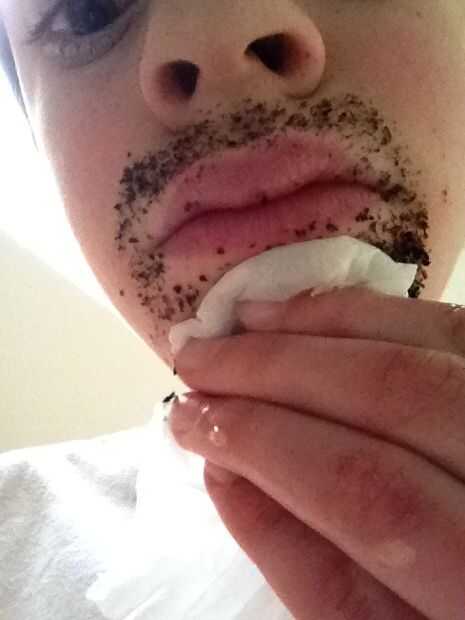 Usar una servilleta húmeda para ayudar a eliminar las escamas de té de su cara si desea eliminar el vello facial artificial.