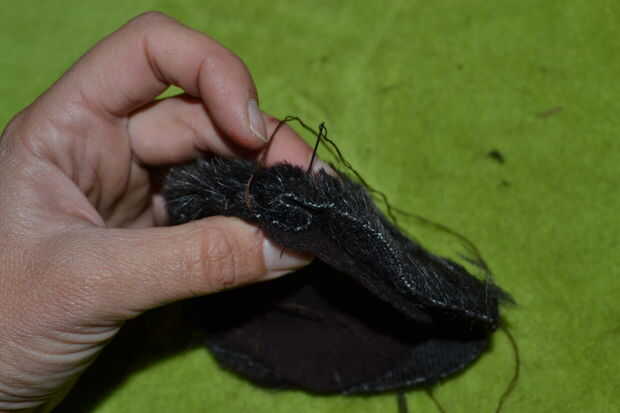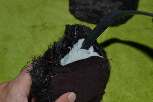 _sew los bordes de la piel del círculo con el borde del paño grueso y suave, dejando una pequeña parte abierta para caber en los auriculares. (hace poco pocas veces en la