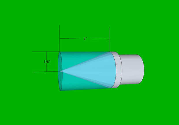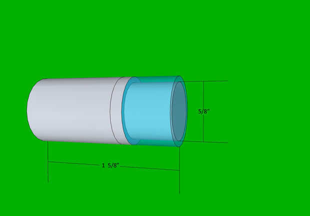 En el torno girar una sección larga de 1/2 pulgadas desde el extremo de la sección de 1 5/8 pulgadas de largo de varilla de aluminio de 3/4 de pulgada hasta un diámetro de 5/8.