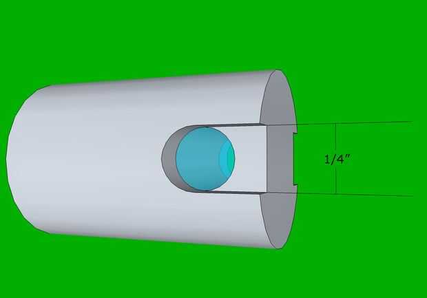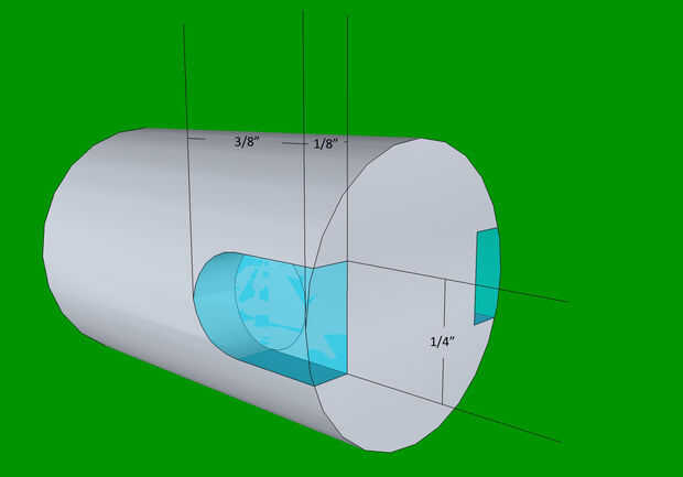 Molino (opcional) B. dos 3/8 de pulgada de largo, 1/4 pulgada de ancho, surcos en los lados opuestos del final no perforado.