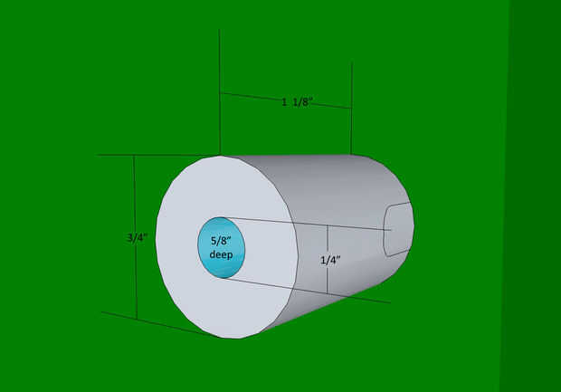 A. tomar la sección de 1 1/8 pulgadas de varilla de 3/4 de pulgada y perfore un agujero profundo de 5/8 de pulgada en un extremo.