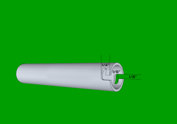 Cortar el tubo de 3/4 de pulgada de diámetro (4 pulgadas). Redondear cualquier rebaba que se forma. En un extremo de la tubería corta dos pares de líneas de guía larga 1/4 de pulgada en los lados opuestos con la sierra y luego abrirlos con el 1/8 de pulgada broca dremel.