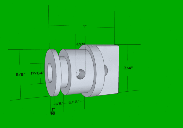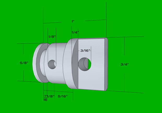 1) centrado en el perfore un orificio de 3/16 '' 1/4 '' de la 3/4 '' final y molino de una superficie plana y profunda 3/8 '' del final en ambos lados de la end en 3/4 '' diámetro 1/4 ''