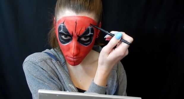 Con negro otra vez añadí sombras hechas, así como una línea abajo de mi cara. También decidí añadir líneas viene de la parte negra, y describí mi cara.