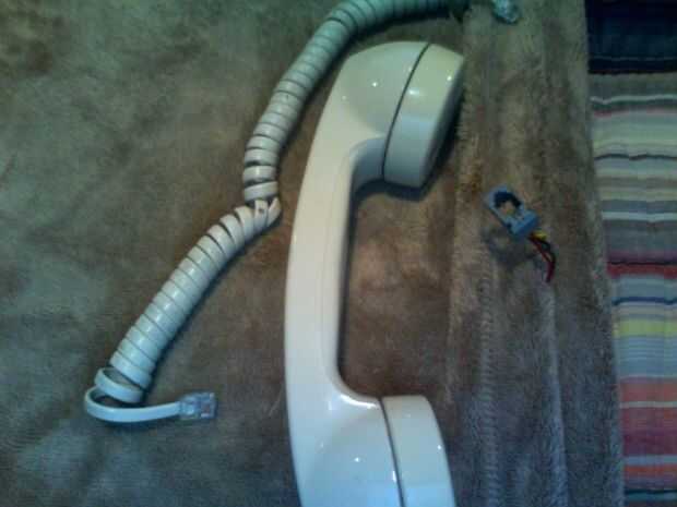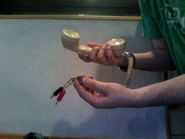 Lo que necesitarás es un teléfono viejo (el que tienen los timbres de metal grandes dentro de ellas y las perillas twirly) pero todos vamos a utilizar desde que son los "auriculares" el cable chueco y el enchufe hembra del teléfono con cerca de dos pulgadas de su cables fijados (mina fueron rojo, verde, amarillo y negro)