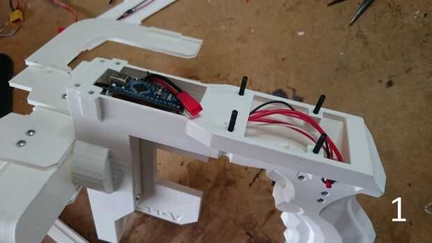 1. Meter el Nano hacia abajo en el cuerpo principal, dejando sólo el JST salir. Inserte 4 tornillos M3x20 a través de los orificios en la parte inferior del cuerpo principal.