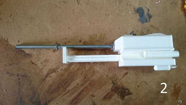 3. Pasar la varilla a través del orificio en el cuerpo principal y montar una tuerca con brida al otro lado. Apriete ambas tuercas por lo que la vaina trasera esté nivelada y no se puede mover.