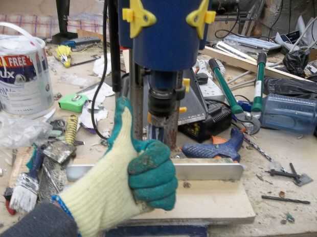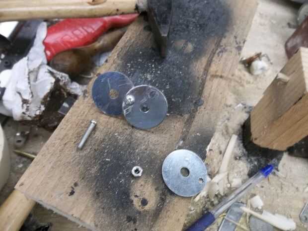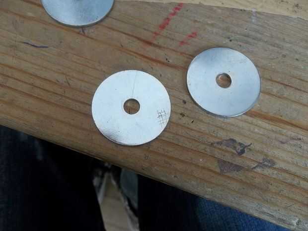 Perforación a través de una superficie lisa de las arandelas no es tan fácil como yo pensaba, por lo que necesita para desbaste de metal de alguna manera, puede flile o ejecutar bajo un pulido de la rueda, pero lo hice de manera diferente. las herramientas que utiliza son
