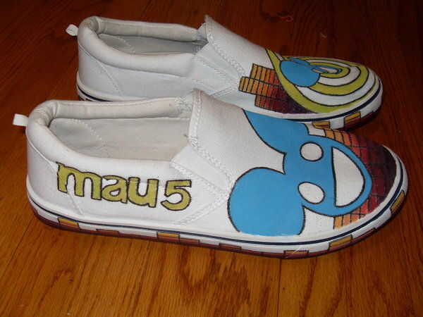 Materiales necesarios: negro, rojo, amarillo, azul, púrpura, blanco y verde de la pintura (acrílico funciona mejor), furgonetas blanco, una bolsa de pinceles baratos (se pueden comprar en walmart por 2$), plumas de sharpie, spray sellador puede, portaminas, goma de borrar y una cinta métrica. Yo primero bosquejó el diseño ligeramente con un lápiz, de esa manera si lío usted fácilmente lo puede borrar con una goma de borrar. Consejo aunque trate de no usar el borrador para a menudo porque puede arruinar el material de la zapata si se aplica demasiada presión en el mismo lugar (especialmente en los zapatos de lona). Después de bosquejó el diseño utiliza una cinta métrica para hacer 1 pulgada marca todos alrededor de la zapatilla, creando un patrón a cuadros que he utilizado como base para mi diseño de gráfico de barras en la parte inferior. Una vez que terminé de rastreo y esbozar el diseño, he pintado sobre áreas que necesitan color y luego se sellador en todo el diseño para prevenir el descoloramiento del color.