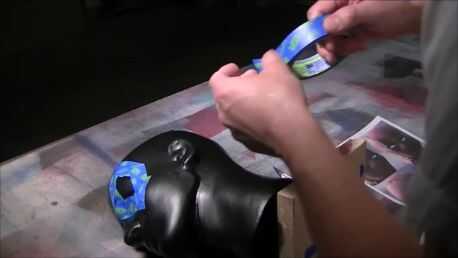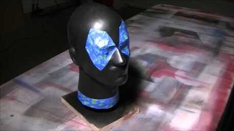 Luego grabado fuera de las áreas negras de la máscara de preparación para la pintura roja. Usé una foto para la referencia en cuanto a la forma. Hay muchas variaciones a la forma de la máscara, estaba rodando simétrico.