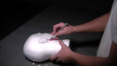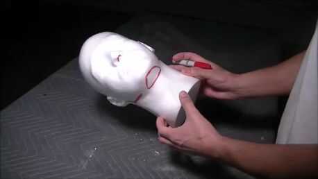 Yo no soy un escultor. Pero pensé que haría unos cortes para darle más de un perfil heroico. Define la línea de la mandíbula y corte la protuberancia nasal entre las dos fosas nasales. Después de terminar todos los cortes lijar todo con lija de grano 320.