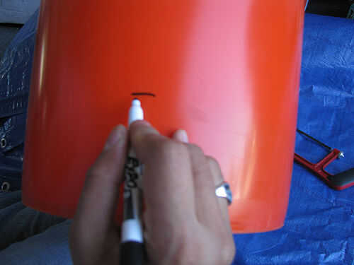 Luego, marca un agujero para el tubo, también 1/2" de la pared del cubo