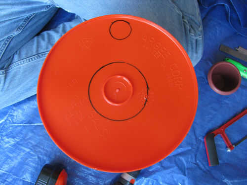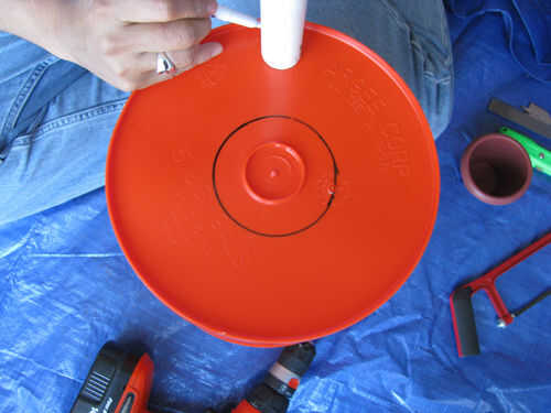 En la tapa, marca un agujero para el tubo (1/2" del borde)