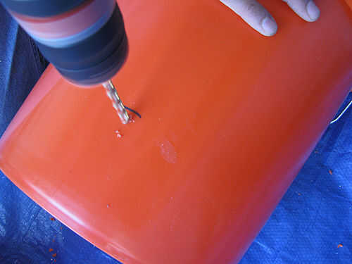 Corte los agujeros de drenaje en la parte inferior de su cubo de primera, con una 1/4" de diámetro broca.
