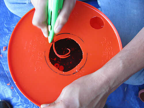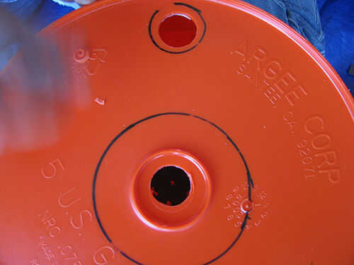 Tenga en cuenta que no tengo una imagen de este proceso para la tapa del cubo, pero quiere hacer lo mismo para el agujero del tubo y los golpes que marcó en el paso 2 en la tapa.