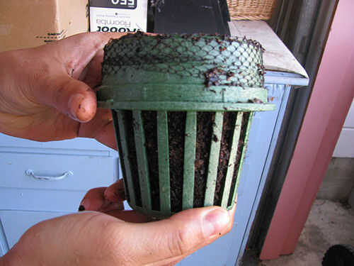La última foto es de la canasta de absorción con suciedad dentro ya. Usted no tiene que hacer esa parte aún, pero esto demuestra cómo la red ayuda a contener la suciedad.