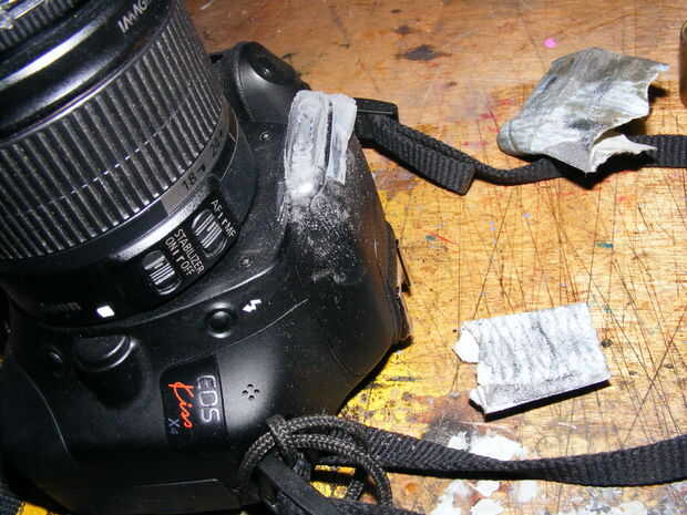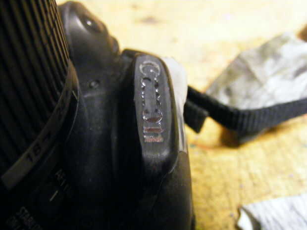 (pelar la mitad de la cámara y doblar de nuevo un pin endeble en la parte posterior del botón)