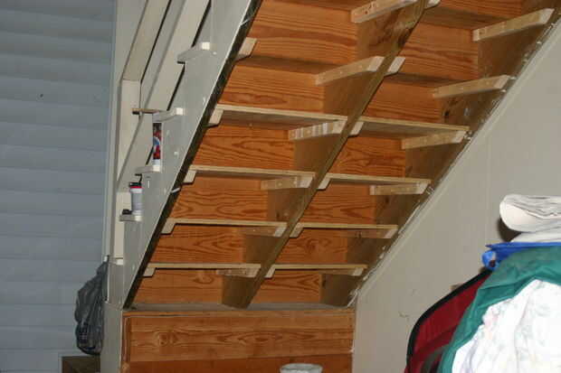 construido una estantería con una escalera vieja que encontré en el thrash. Barnizado con acondicionador a base de agua y añadido soporte para evitar que los libros de a través de lauan. Costo era prácticamente libre causa tenía restos de madera y ba