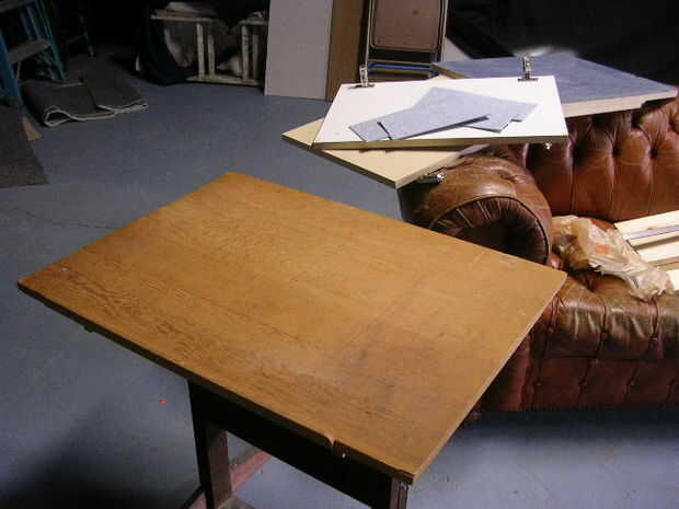 Este no era el plan original. Encontré la mesa en la acera hace años. Había montado a la pared en el taller del sótano. La caja de luz hice también hace años y que solía tener las piernas. Iba a salir de los sótanos, pero tuve una idea y parecía enca
