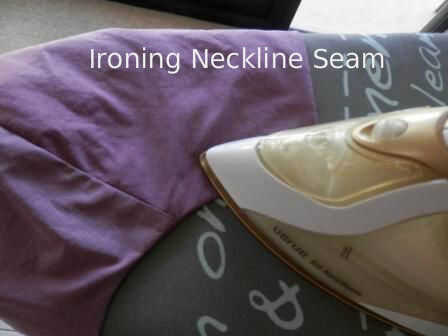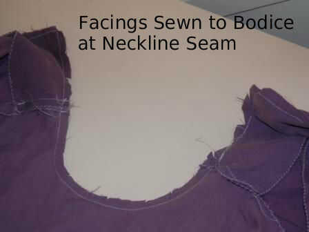 Fijar el revestimiento en la parte superior (derecho lados juntos), y luego coser alrededor del escote. Clip las curvas antes de pasar a través para evitar cualquier agrupar y planchar la costura del escote.