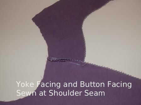 A continuación, en zigzag los bordes para evitar que se deshilache y coser el botón las vistas en el canesú que enfrenta en las costuras de los hombros con los derechos juntos.
