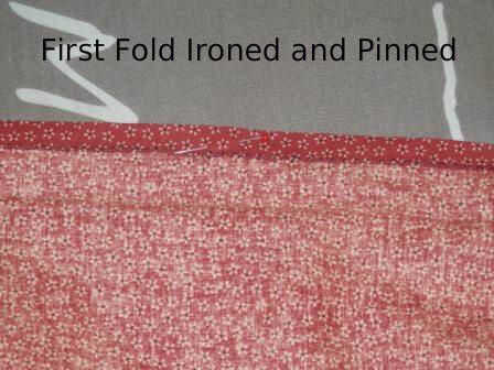 Comience doblando sobre la parte inferior de la falda 1 centímetro; hierro y pin. Para ello todo el camino alrededor de la parte inferior de la falda. (¡ Por fin!) el comienzo otra vez, doble por segunda vez (lo hice 3 cm en la segunda vuelta más), hierro y prender. Continuar haciendo esto todo el camino alrededor de la parte inferior de su falda.