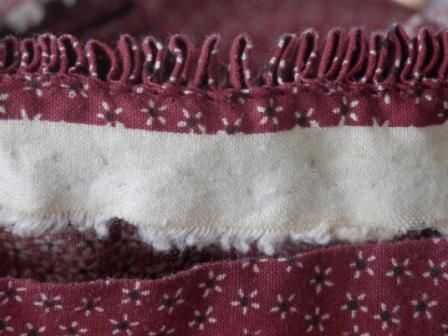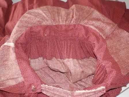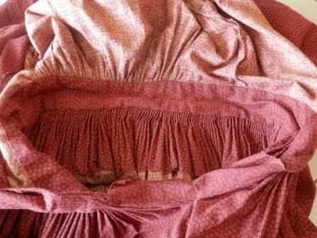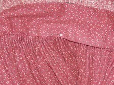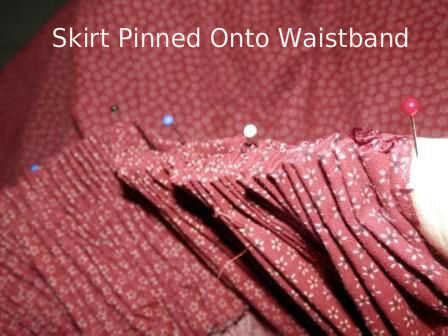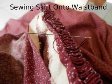 Alinee el cuerpo a la falda (derecho lados juntos) y tirar de las cuerdas en el cartucho plisado que la falda ajusta el borde inferior de la blusa. Asegúrese que los pliegues están incluso. Perno en su lugar.