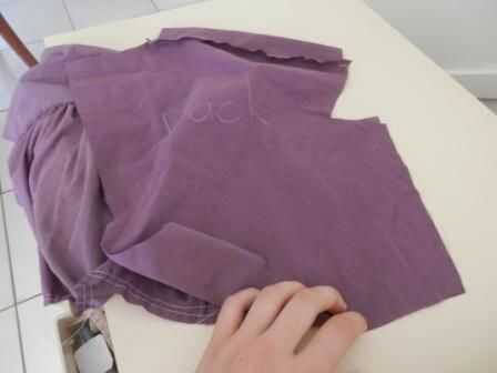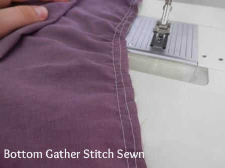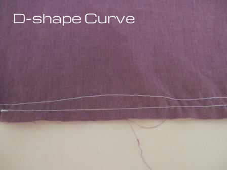 A continuación ejecutar una puntada de recogida a lo largo de la parte inferior del frente se reúnen panel, aproximadamente 10-15 cm de cada lado. Para evitar el juntar a los lados, me gustaria hacer una pequeña curva en forma de D en los dos extremos de la puntada de recolección como se muestra arriba.