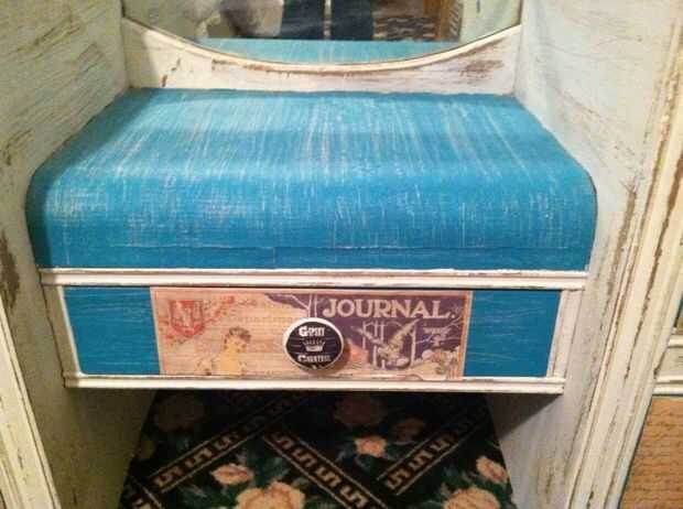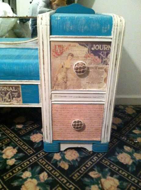 5. añadido vintage 1930 / reproducción 40 publicidad documentos / con mod - podge técnica para frente de cajones-mezcla de blanco Elmer pegamento escolar y agua -
