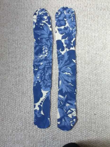 Encontrar un algo de tela te gusta y córtela en dos rayas de unos 8 a 10cm de ancho. Pueden ser cualquier longitud depende del tamaño de su cabeza. (Debe ser más grande que su cabeza por lo menos 25cm) Luego alrededor de los extremos.