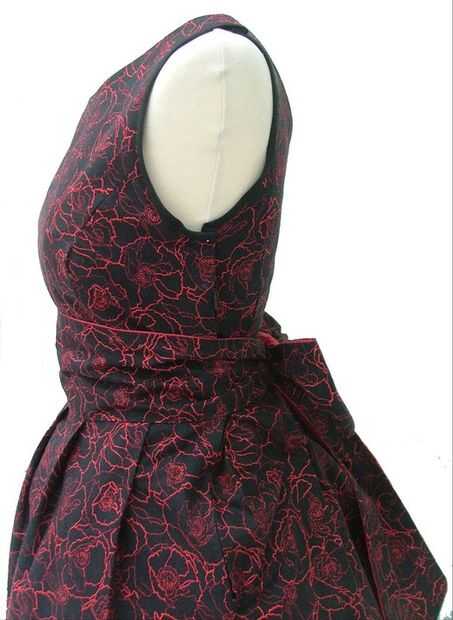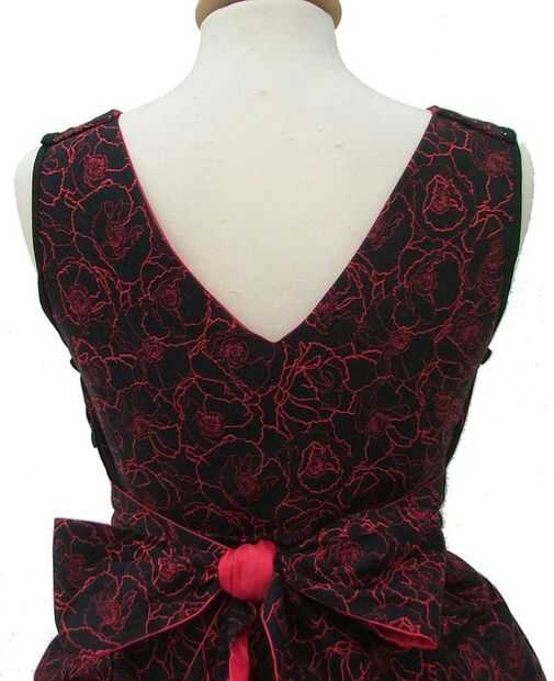 Compré un patrón y adaptado agregando bajo 'v' en la parte posterior y acortamiento de la falda. También he añadido la hoja con la tela restante.