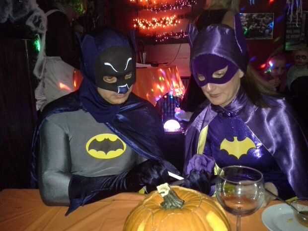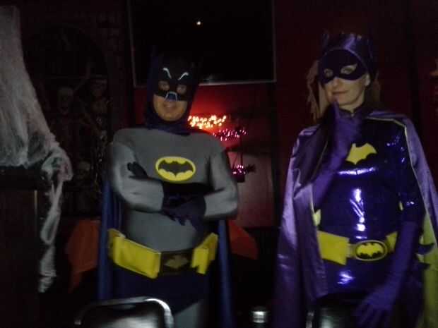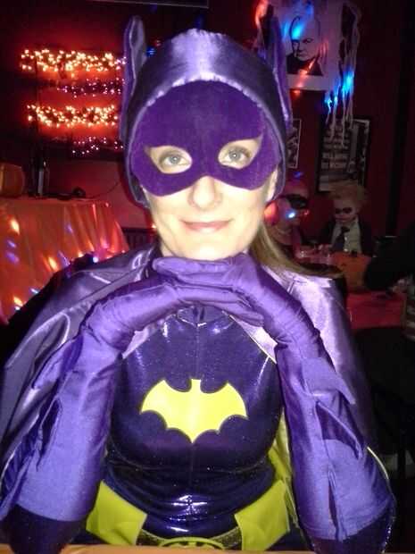 Más tarde, me encontré con el cruzado de la capa en nuestro pub local para una noche tonta de trivia y convites sabrosos. Ganamos para nuestros trajes y el premio fue vino!