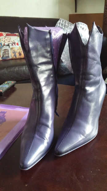Bueno, como dije antes, la encarnación anterior de mis botas de palo fueron aumentadas de un par de botas piel artificial púrpura que marqué baratos en ebay. Duraron de tres usa antes la piel artificial rallado más allá de cualquier razonable uso. (esto me irritaba a ningún extremo, ¿con qué frecuencia usted encontrar botas púrpura ¡ grrrrr).