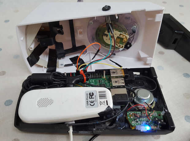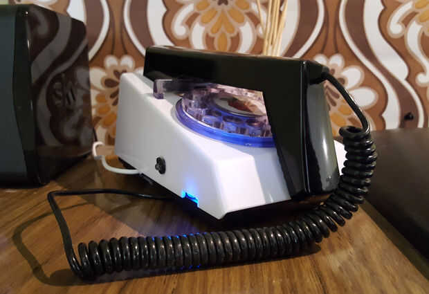 Se trata de un estilo de la década de 1970 trimphone que he convertido para albergar un Pi de frambuesa que ejecuta el servicio de búsqueda de Amazon Alexa voz.